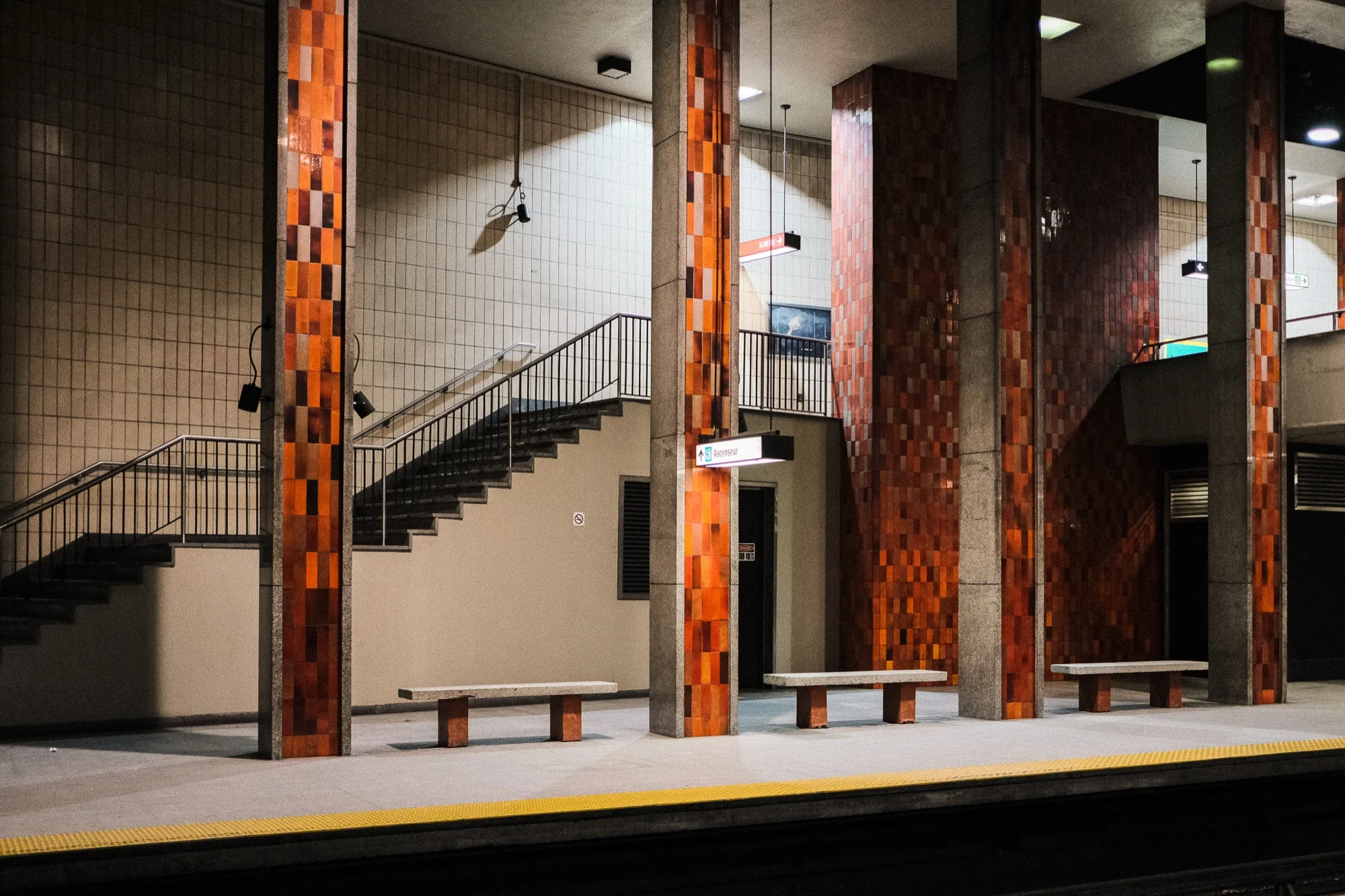 This series is the first photo project that I have done with a clear direction in mind. It was a lot of work but also a lot of fun. What started out as just a way to keep shooting without suffering from frostbite as winter rolled in, became my first photo project ever. For a little over a year I traveled Montreal subway network, doing all of the 68 stations and trying to find something interesting too shoot each time. As a photographer, I have learned a lot along the way. Among other things, the limitation of shooting only primes and how even in the most boring and conventional places, there is always something worthy of your attention if you look closely enough.